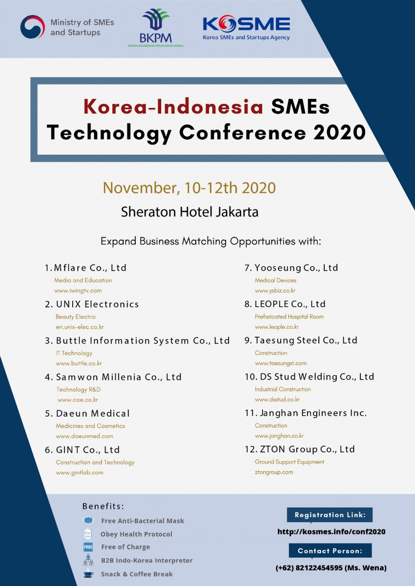 한국 중소벤처기업진흥공단과 인도네시아 투자청이 주최하고 한국 12개 중소 밴처기업이 참여하는 상담회입니다.