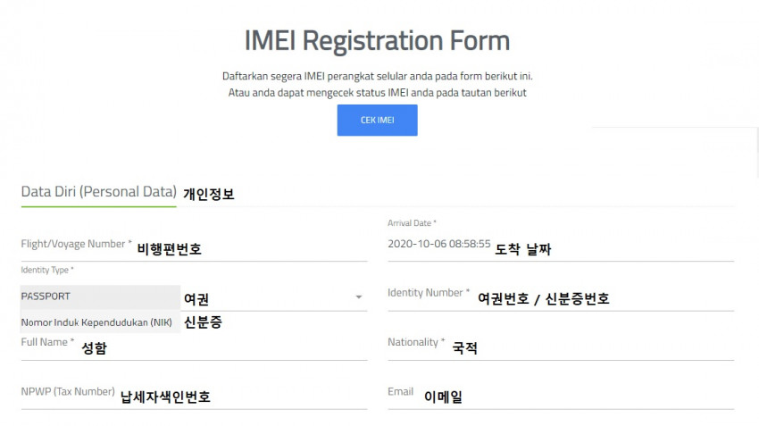 - 입국하기 전에 사이트 https://www.beacukai.go.id/register-imei.html 방문을 해서 IMEI 등록합니다.